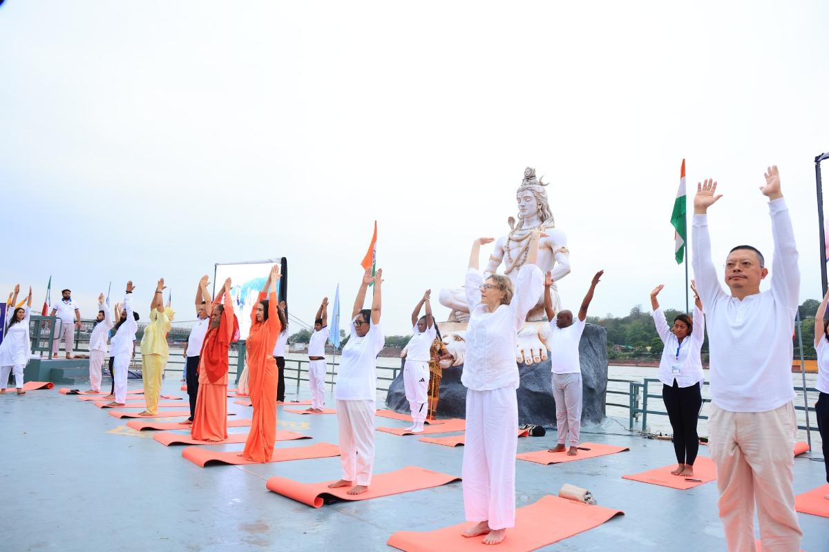 Ambassadors, High Commissioners & special guests joined hands in unity on the sacred banks of Maa Ganga for a global celebration of Yoga!