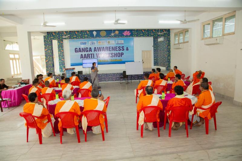 The Ganga Awareness and Aarti Workshop began on Sunday at Parmarth Niketan, inaugurated by GIWA’s Co-Founder Param Pujya Swamiji and Secretary-General Pujya Sadhviji. In collaboration with Namami Gange, Arth Ganga, GIWA, and Ganga Action Parivar, this program brought together 25 participants from Uttarakhand and Uttar Pradesh who perform Ganga Aarti in their hometowns. The workshop empowered them to deepen their connection to the Ganga’s ecosystem and use aarti as a tool for raising environmental awareness.