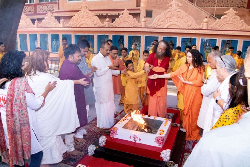 Special Holika Dahan Ceremony welcomes participants on Eve of IYF today with sacred fire ceremony and Ganga Aarti, celebrating light of wellness and health over darkness disease and illness