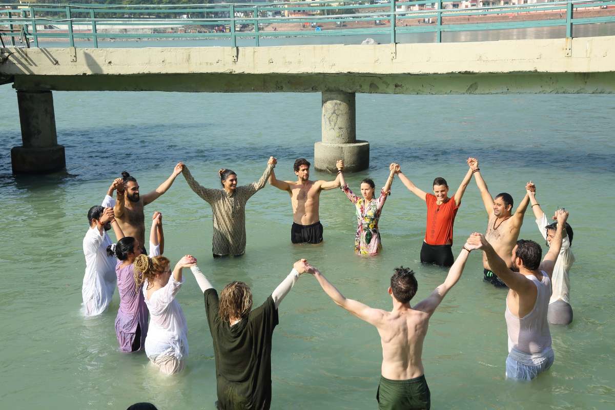 During the five-day retreat, seekers enjoyed practicing yoga, meditation, yajna, Ganga Aarti, bathing in the holy Ganga, and participating in satsang.