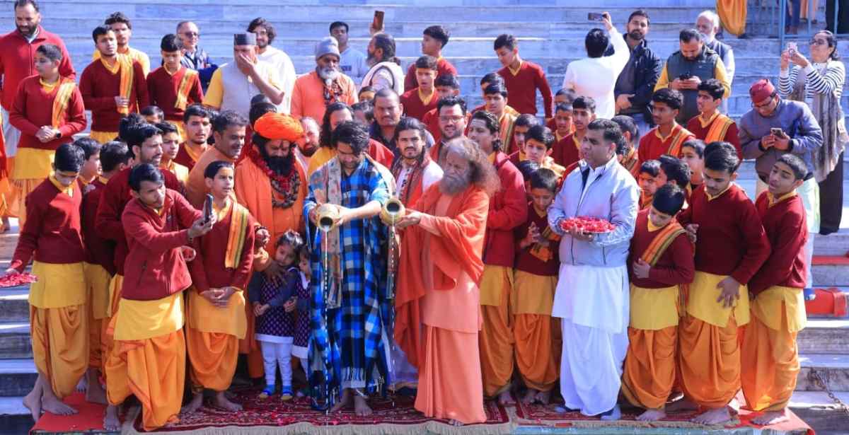The sacred visit of Bageshwar Peethadhishwar, revered Acharya Dhirendra Krishna Shastri Ji to Parmarth Niketan, Rishikesh became a divine confluence of Sanatan values and selfless service. He was warmly welcomed by the students of Parmarth Gurukul with conch sounds, Vedic chants, and a shower of flowers, filling the atmosphere with spiritual energy.