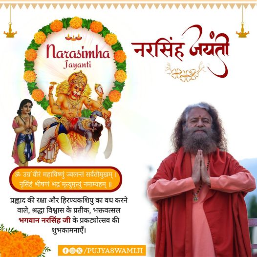 प्रह्लाद की रक्षा और हिरण्यकशिपु का वध करने वाले, श्रद्धा विश्वास के प्रतीक, भक्तवत्सल भगवान नरसिंह जी के प्रकट्योत्सव की शुभकामनाएँ।