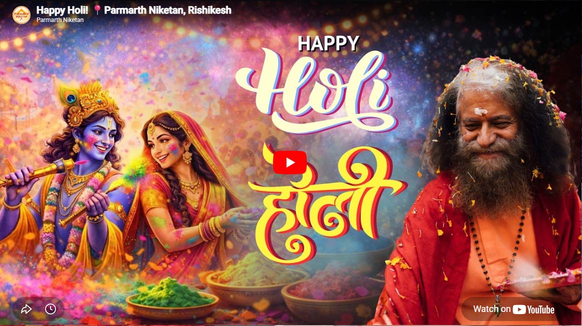 Heartfelt Holi greetings to all from Parmarth Niketan! Let us celebrate Holi with the joy of colors, the waves of higher consciousness, and the spirit of patriotism. This Holi, let