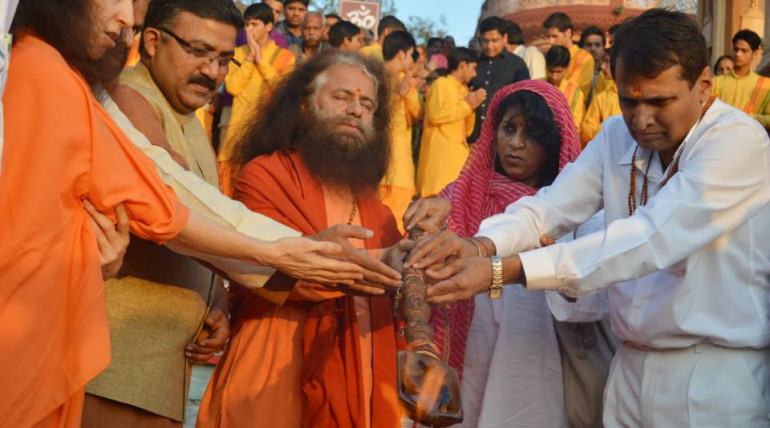 Hon'ble Health Minister of Delhi pledges for clean water for all through a healthy River Yamuna, at Parmarth Niketan, the Secretariat of the Global Interfaith WASH Alliance.