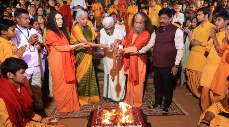 श्रीमती निर्मला सीतारमण जी अपने माता-पिता के साथ पधारी परमार्थ निकेतन, शिविर, प्रयागराज