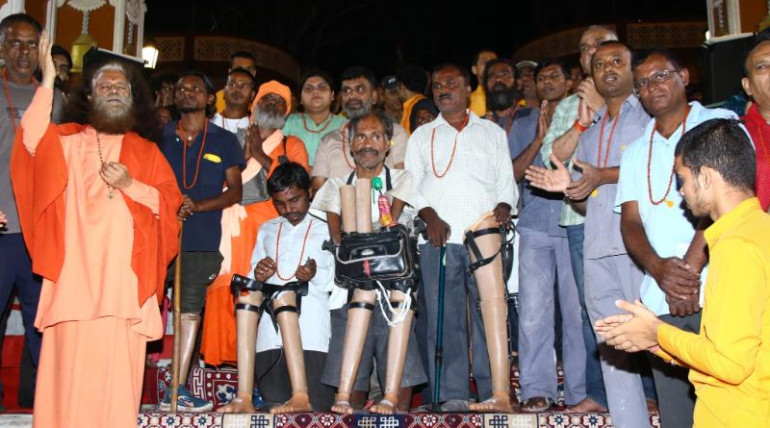 At the closing ceremony of the Disability-Free Camp at Parmarth Niketan, Rishikesh, HH Param Pujya Swami Chidanand Saraswatiji honored and garlanded differently-abled individuals with Rudraksha during the Ganga Aarti. Prosthetic…