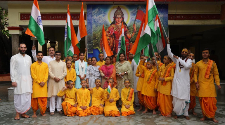 The Tricolor proudly unfurled at Parmarth Niketan Flag hoisting at Parmarth Vidya Mandir, Chandeshwar Nagar — Saluting our Martyrs Patriotic cultural performances by Parmarth Gurukul Rishikumars & Vidya…