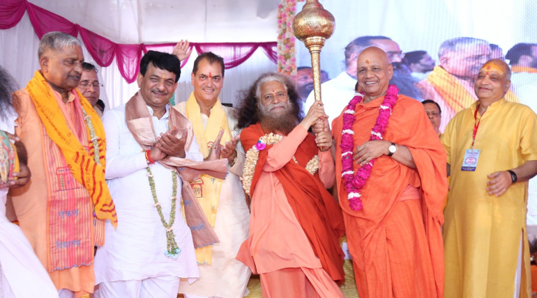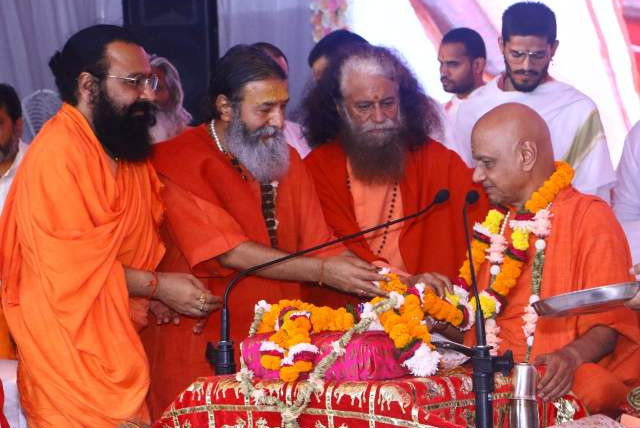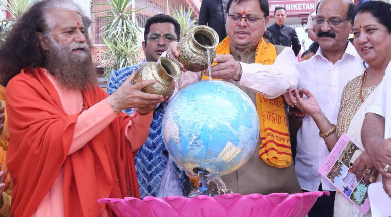HH Param Pujya Swamiji welcomes Hon'ble Chief Minister of Uttarakhand, Shri Pushkar Singh Dhamiji; Hon’ble Minister of Uttar Pradesh, Former Governor of Uttarakhand Smt Baby Rani Mauryaji, Hon’ble Minister of…