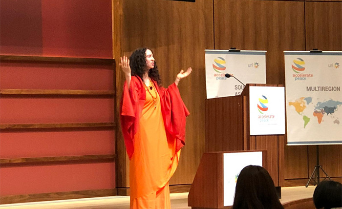 Sadhviji recently spoke at the Accelerate Peace conference at Stanford University, organized by United Religions Initiative and the Hoover Institute at Stanford. The theme was Women's Empowerment and the Environment.