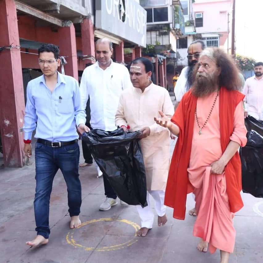 Our Co-Founder and President of Parmarth Niketan, HH Param Pujya Swami Chidanand Saraswatiji conducted a cleanliness drive (safai abhiyan) as a part of Gandhi Jayanti. The Minister of Health, Education and Cooperation, Government of Uttarakhand Dr. Dhan Singh Rawat, acharyas and Gurukul students of Parmarth, GIWA team members, and Yoga students participated in the drive.