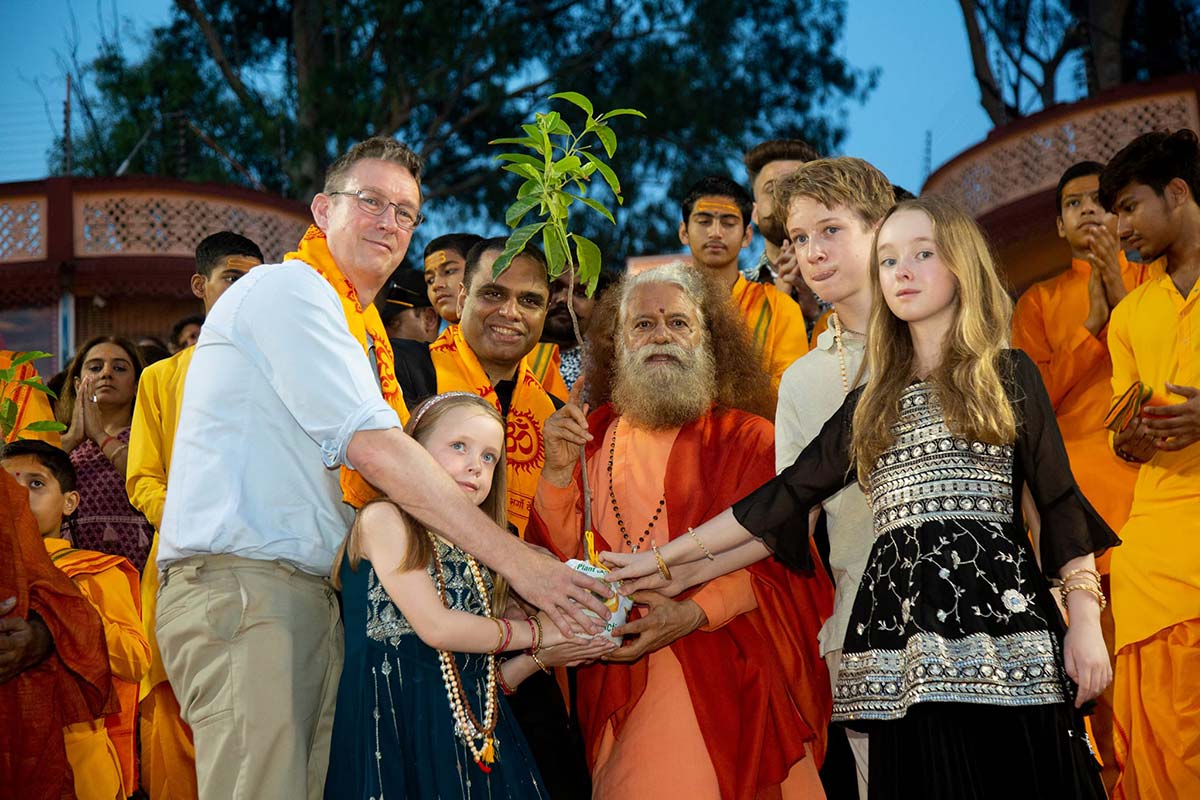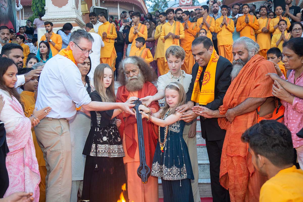 Dr. Asle Toje, Deputy Leader of the Norwegian Nobel Committee, visited Parmarth Niketan in Rishikesh with his three children. They participated in the renowned Ganga Aarti and received blessings from Pujya Swamiji while discussing global warming and climate change.
