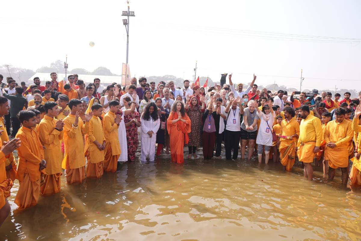 The Kumbh Mela is a divine occasion where devotees from around the world took a sacred dip in the holy waters of the Sangam under the guidance of Pujya Sadhvi Bhagawati Saraswati Ji. This extraordinary gathering sends a powerful message of Vasudhaiva Kutumbakam (the world is one family).