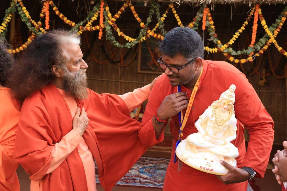 The event was graced by Union Minister of State for Energy Shri Shripad Naik Ji, Advocate Deepak Sai Ji, and several other eminent personalities. Swami Ji gifted sacred Rudraksha plants and portraits of Lord Shri Ram to all the distinguished guests.