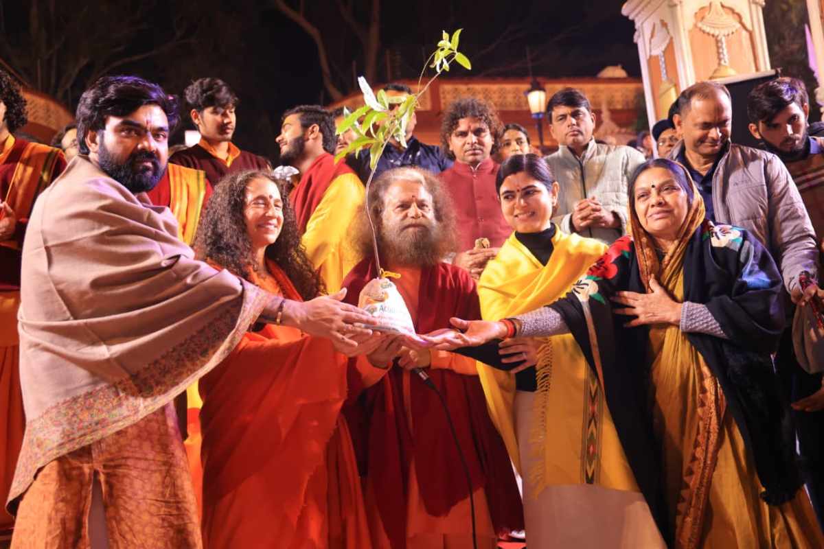 At the conclusion, Pujya Swami Chidanand Saraswati Ji presented a Rudraksha sapling to Devi Chitralekha Ji and the organizers, marking the beginning of spreading the message of green storytelling.