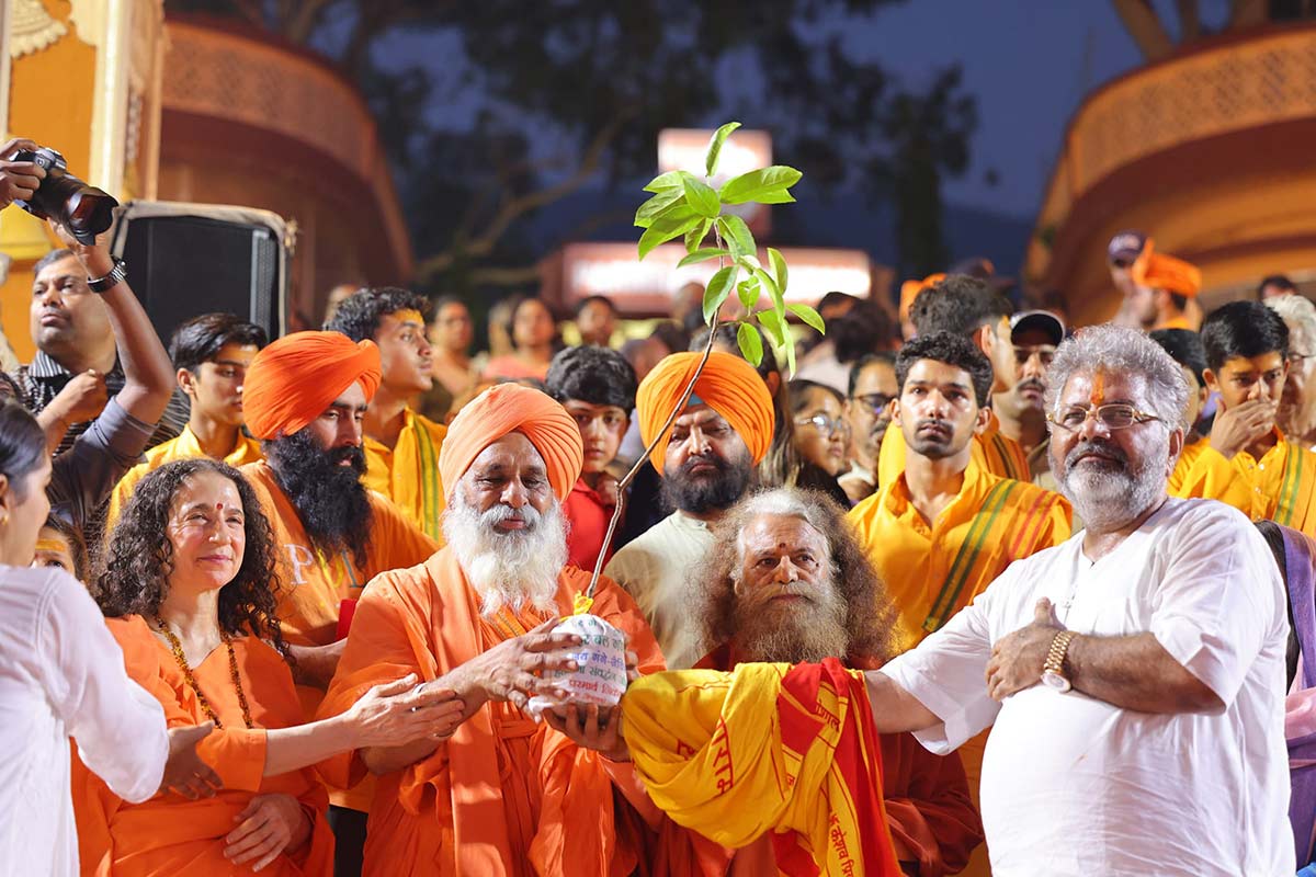 Environmental hero, Padma Shri, Sant Balbir Singh Seechewal ji was warmly welcomed by the Rishi Kumaras and Acharyas at Parmarth Niketan. They discussed initiatives to revive rivers and water bodies. Pujya Swamiji praised Sand Balbir Singh Seechewal ji’s efforts in transforming Punjab’s heavily polluted Kali Bein river into a clean, flowing waterway. Highlighting the cultural and ecological significance of rivers, Pujya Swamiji emphasized the need for collective action to preserve them. Pujya Swamiji presented him a Rudraksha plant from the Himalayas as a token of their shared commitment to environmental conservation.