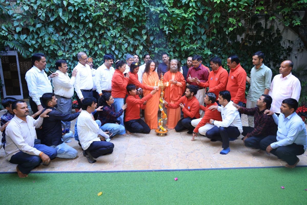 At the sacred premises of Parmarth Niketan, the team promoting cleanliness and health in the remote regions of the Himalayas conducted a Flag-In Ceremony in the holy presence of Pujya Swami Chidanand Saraswati Ji. The Ice Axe, the symbol of the campaign, was presented to Swami Ji by the team.