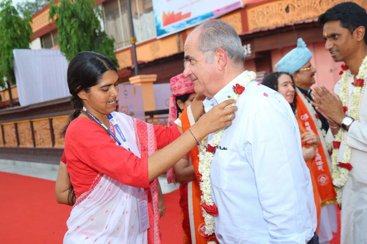 After the lamp lighting and sacred music, Pujya Swami Chidanand Saraswatiji and Pujya Sadhvi Bhagawati Saraswatiji shared messages of inspiration and wisdom with the delegates on the deep meaning of Vasudhaiva Kutumbakam and how our work and our lives can truly embody and manifest this profound teaching.