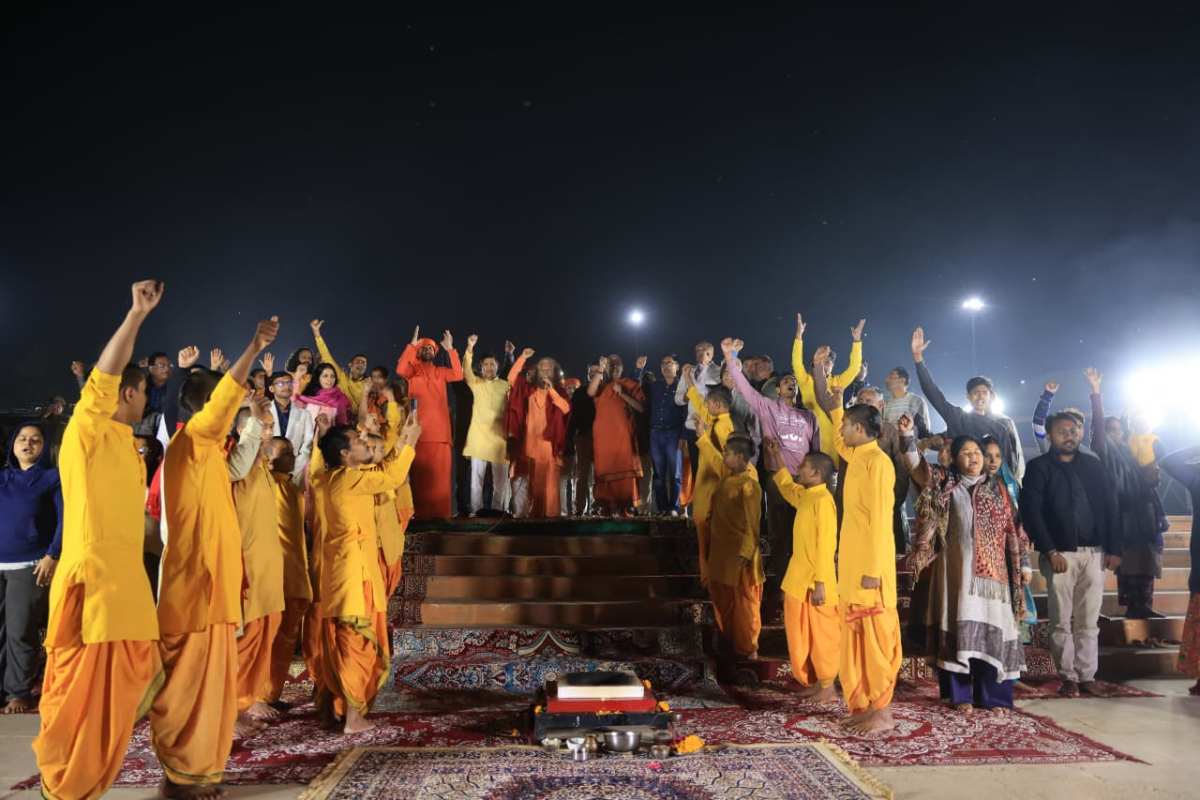 At the conclusion of the Aarti, all present devotees took sacred pledges for cleanliness, water conservation, environmental protection, and tree plantation.