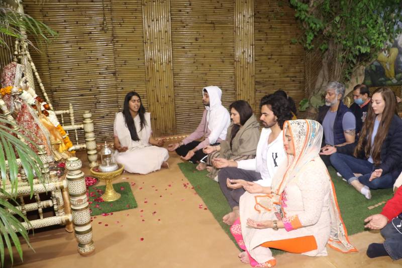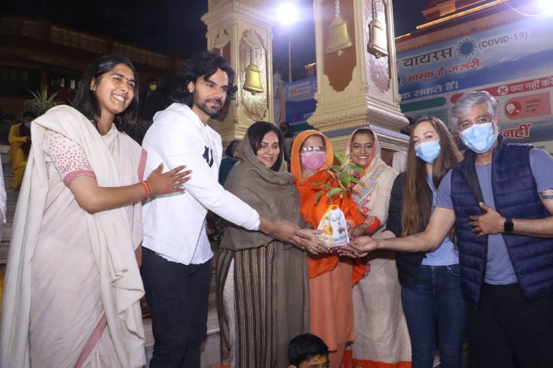The stars arrived off of their shoot for Film Hindutva taking place for the next few days in Rishikesh, Uttarakhand. Coincidentally also joining them the same evening were Shataf Figar and Kristina who had just finished their shoot of Alt Balaji web series Punchbeat Season 2 in Dehradun. They were deeply inspired by the work and the sacred aura of the Ashram and planned to visit again when HH Pujya Swai Chidanand Saraswatiji – Muniji and Pujya Sadhvi Bhagawati Saraswatiji return back.