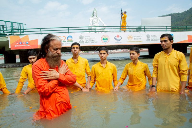 On yesterday’s auspicious occasion of Ganga Dussehra, HH Param Pujya Swami Chidanand Saraswatiji, Pujya Sadhvi Bhagawati Saraswatiji, Parmarth’s Acharyas and Rishikumars and the Parmarth Parivar here and abroad celebrated the arrival of Goddess Ganga’s arrival on Earth by recommitting themselves to keeping her sacred waters clean and plastic-free during a beautiful Yagya puja and snan on her holy banks and during Pujya Sant Murlidharji Maharaj’s renowned Ram Katha programme, ongoing at the Ashram through 15 June.