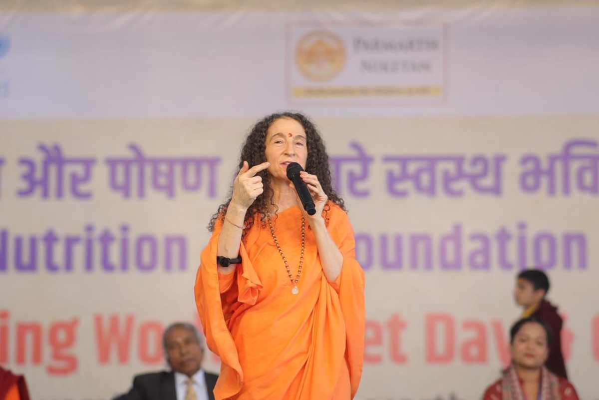 Program Director Ganga Nandiniji paid tribute to Padma Shri Thimmakka, the ‘Tree Lady of India,’ and shared the message of learning from her inspiring life of tree planting.