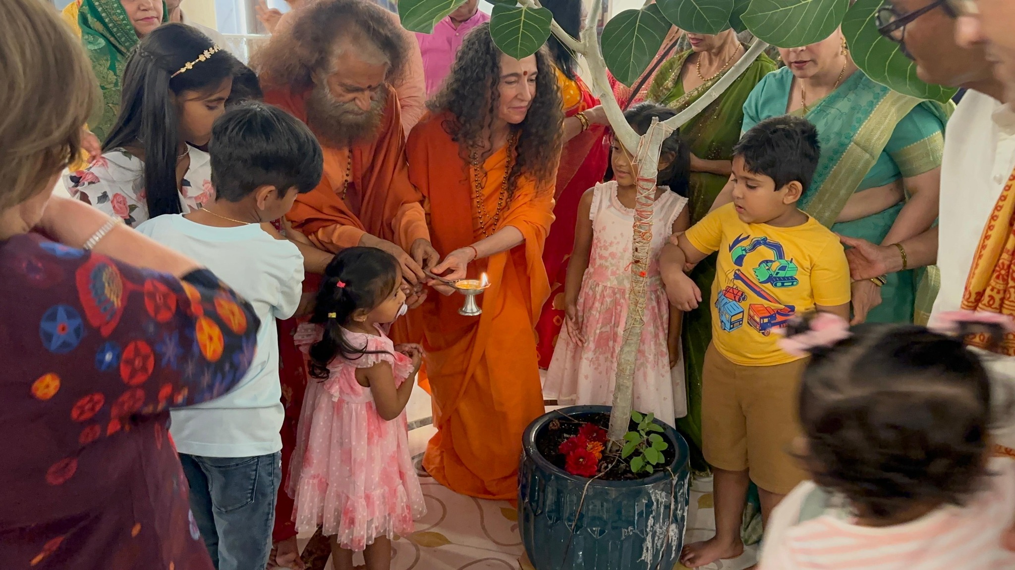 In the divine presence of Pujya Swami Chidanand Saraswatiji and Pujya Sadhvi Bhagawati Saraswati Ji, Indian families living in the USA joyfully celebrated Raksha Bandhan.
