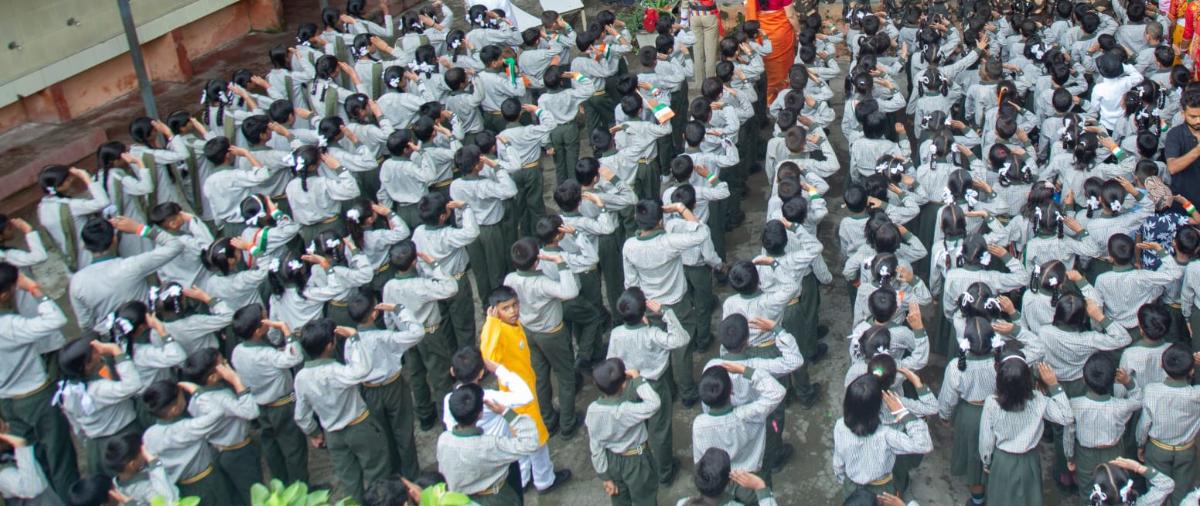 Flag hoisting at Parmarth Vidya Mandir, Chandeshwar Nagar — Saluting our Martyrs