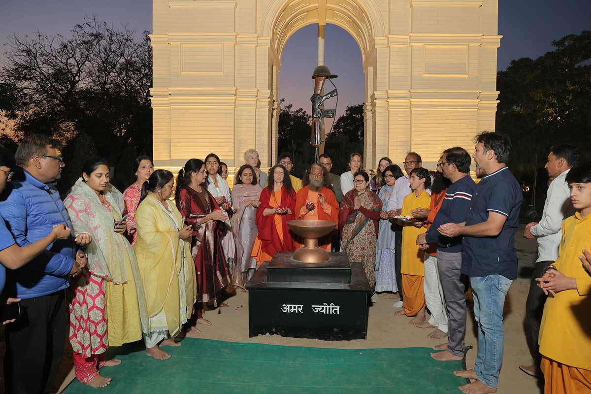 On this divine occasion of Kumbh, Pujya Swami Chidanand Saraswatiji & Sadhvi Bhagawati Saraswati JI offered heartfelt tributes at the Amar Jawan Jyoti.