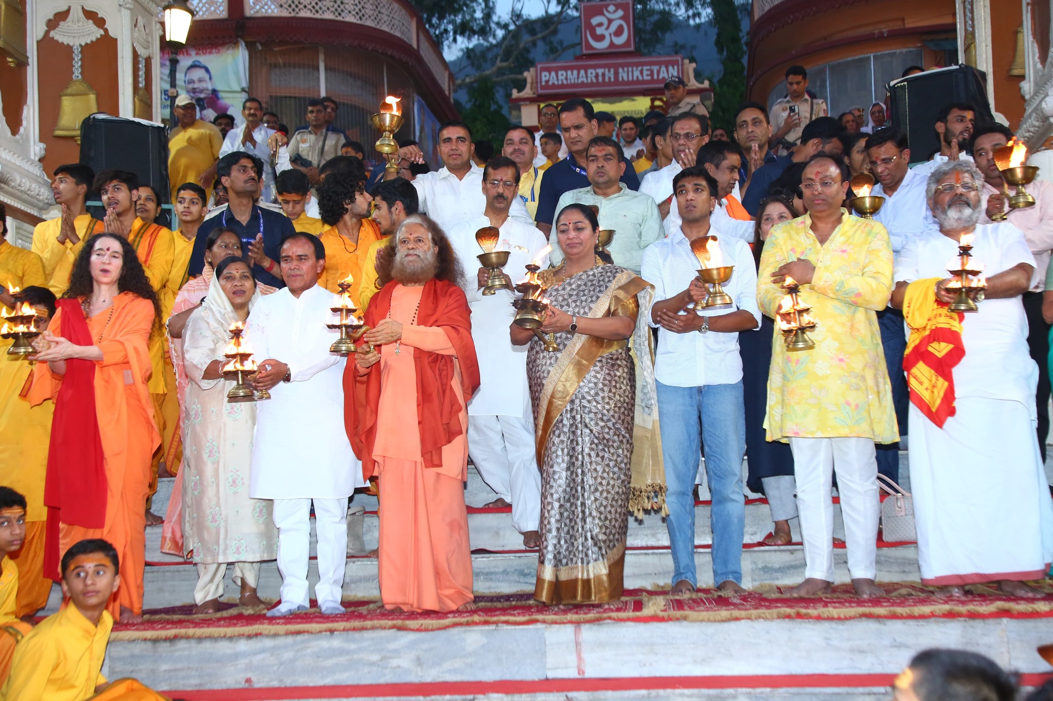 Hon’ble Delhi Chief Minister Mrs. Rekha Gupta Ji and Uttarakhand Education & Health Minister Dr. Dhan Singh Rawat Ji visited Parmarth Niketan and participated in the world-renowned Parmarth Ganga Aarti,