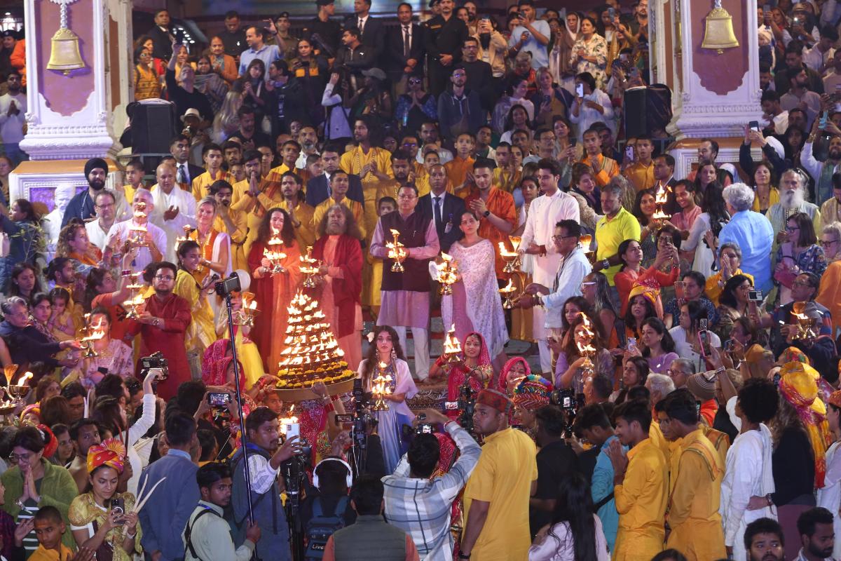 The opening of the International Yoga Festival (IYF) was celebrated with great enthusiasm and joy today during the Sacred Ganga Aarti. Participants of the annual world famous IYF were immersed in a unique experience of India’s sacred festival, a celebration dedicated to overcoming darkness and bringing light to the world. The ceremony was filled with powerful messages, uplifting songs, vibrant dance, and inspiring words, marking the beginning of this transformative gathering.