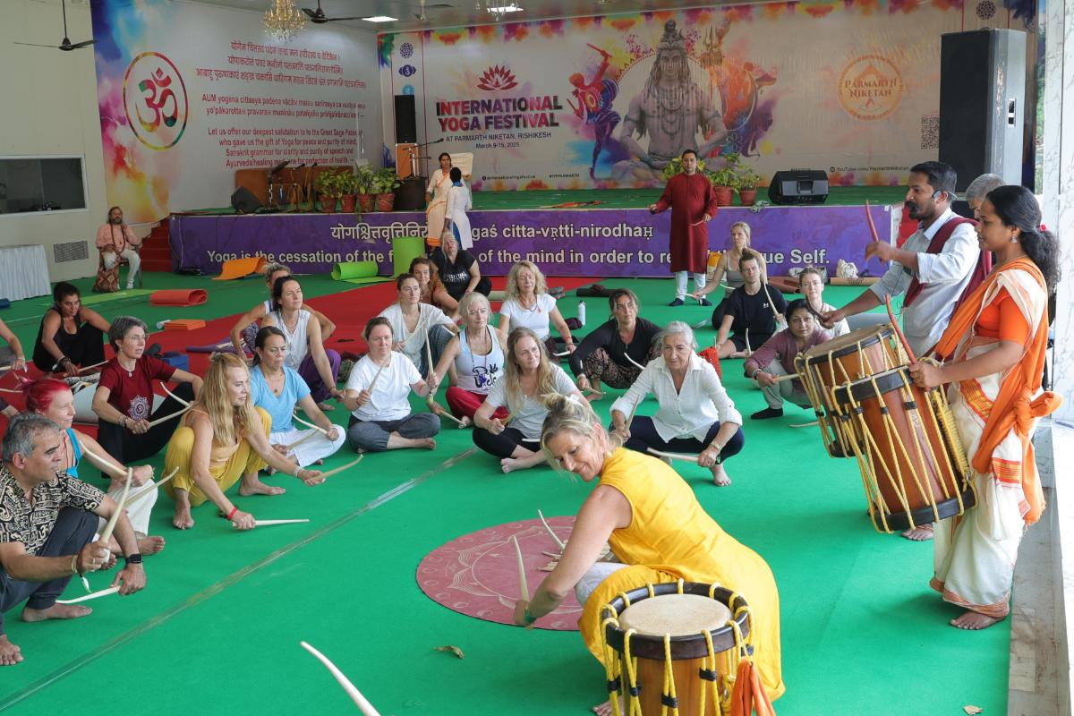 परमार्थ निकेेतन के पवित्र शांतिपूर्ण वातावरण में ध्यान सत्र, आत्मिक सूर्योदय गायन, और पवित्र संकीर्तन का आनंद ले रहे हैं और 48 देशों से 65 प्रतिष्ठित योगाचार्य, योगियों को विभिन्न विधाओं का अभ्यास करा रहे हैं।