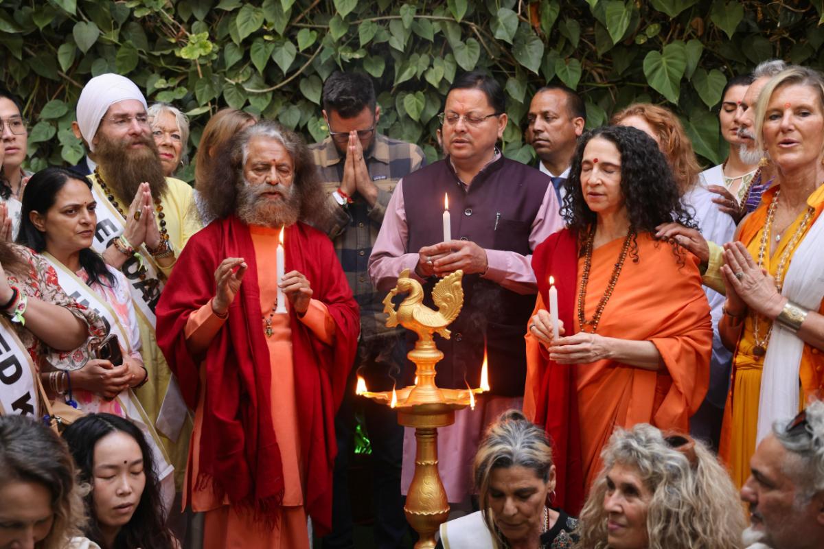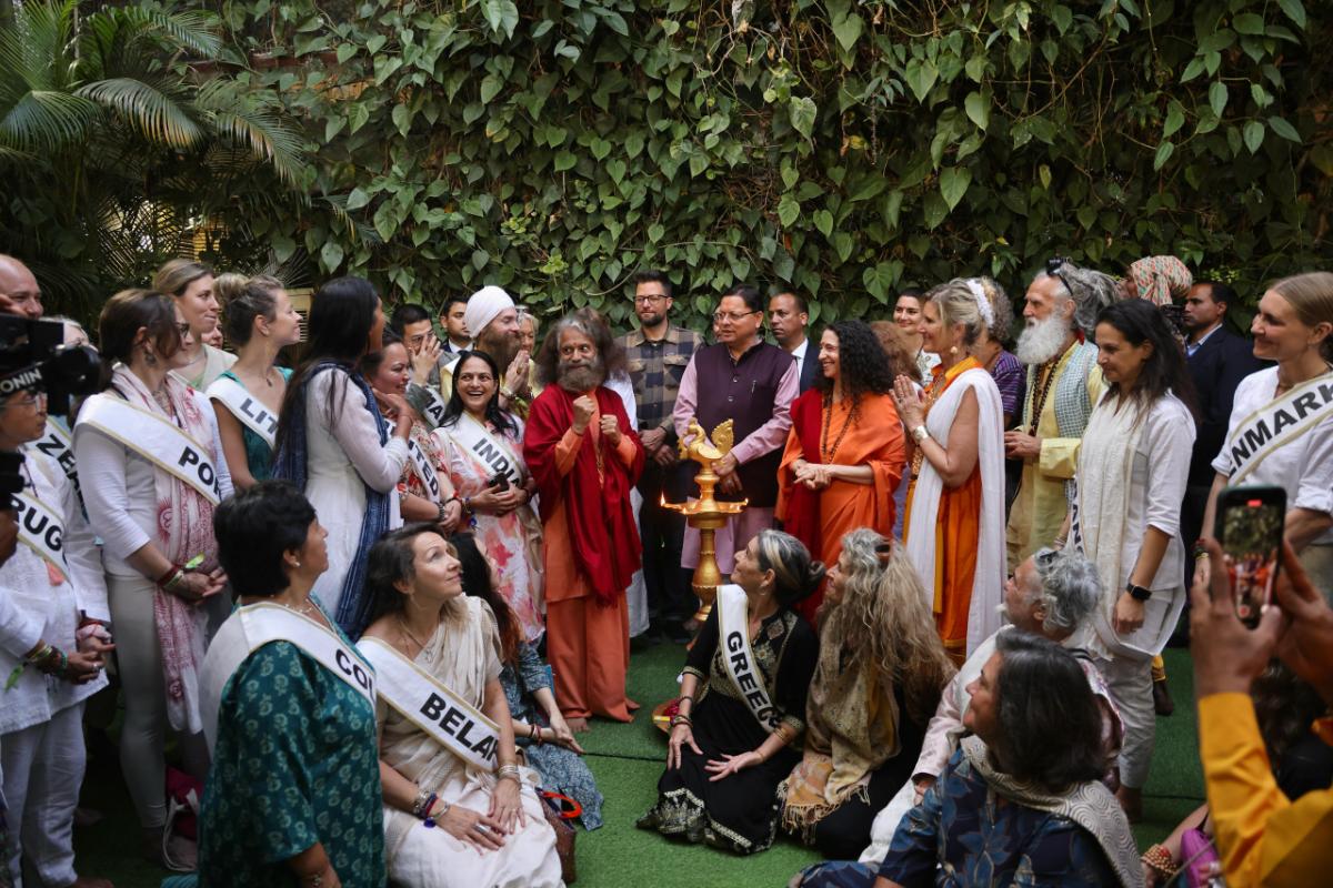 The Honorable Chief Minister, Shri Pushkar Singh Dhami, along with Parmarth Niketan President HH Pujya Swami Chidanand Saraswati Maharaj Ji, Dr. Sadhvi Bhagawati Saraswati Ji, renowned storyteller Ms. Jaya Kishori Ji, and nearly 1,000 yoga practitioners, teachers, and ambassadors from 50 countries, formally inaugurated the Yoga Festival with a ceremonial lamp lighting.