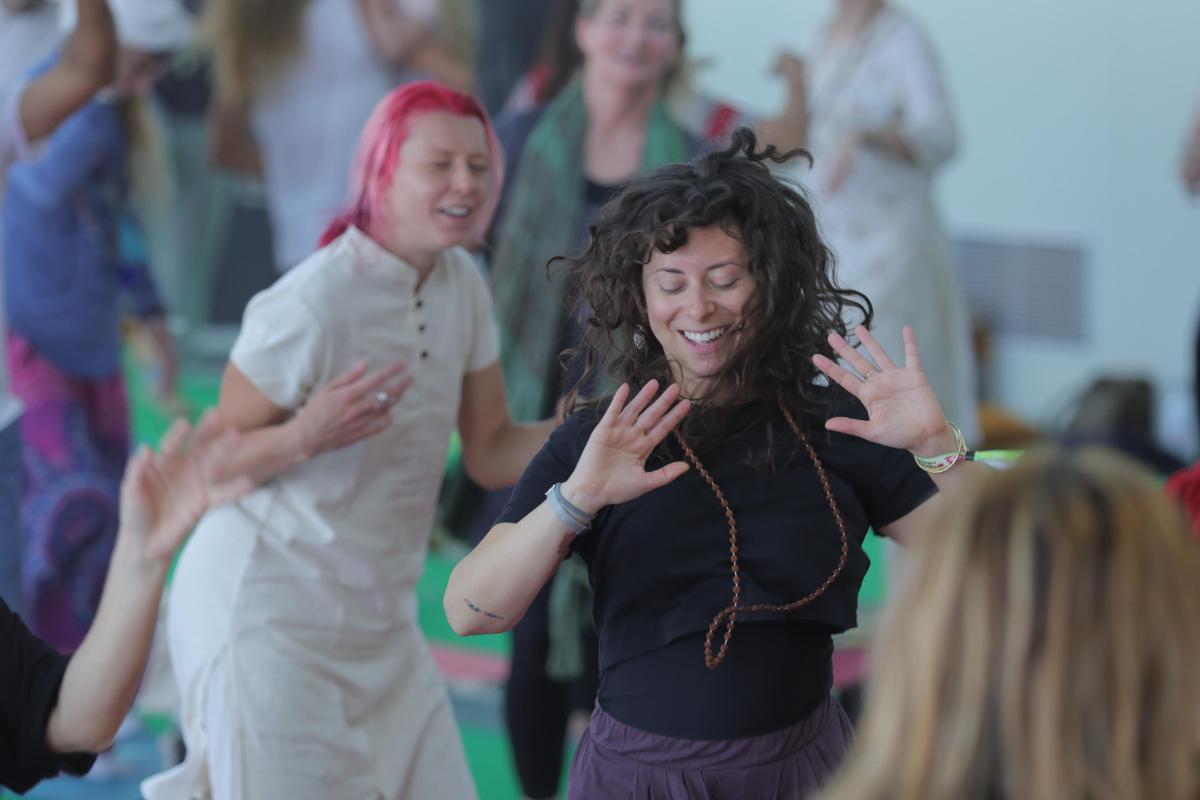 Participants also immersed themselves in profound teachings, such as “Yogasana 1: Vinyasa Krama – The Forgotten Language of Sequencing” by Stewart Gilchrist, founder of the East London School of Yoga; “Ancient Secrets to the Healing Diet” by Dr. Krushna Naram; “The Kundalini Express” by Tommy Rosen; and “Enlivening Shakti” with Anand Mehrotra, who developed the Sattva Yoga style and founded the Sattva Yoga Academy. Participants practiced ancient Himalayan pranayama and kriyas, then danced ecstatically, while Mehrotra encouraged yogis to “Move like you’ve never moved before!”