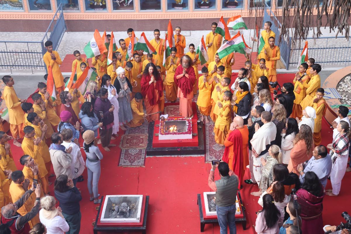 Welcoming the participants from around the world, Pujya Swami Ji shared, “If you wish to experience peace on this earth, this is the path: Yoga is the union of Shiva and Shakti. Yoga is the way, love is the way, peace is the way. That is why we come to Yoga, come to the banks of Maa Ganga in the lap of the Himalayas. Your practice will first transform yourself, then your communities, countries, and the world.”