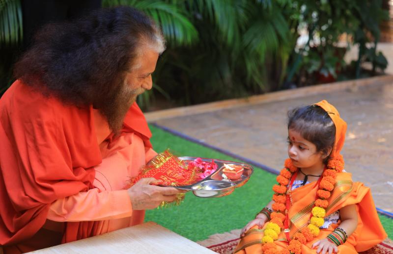 On the conclusion of Navratri and the auspicious occasion of Dussehra, HH Pujya Swamiji, Pujya Sadhviji, and our Parmarth Niketan family held a beautiful Kanya Puja for all the young girls, serving them food (prasad) and gifts honoring them as embodiments of the Mother Goddess. Let us all celebrate the victory of good over evil and the strength of feminine power, the inner Shakti.