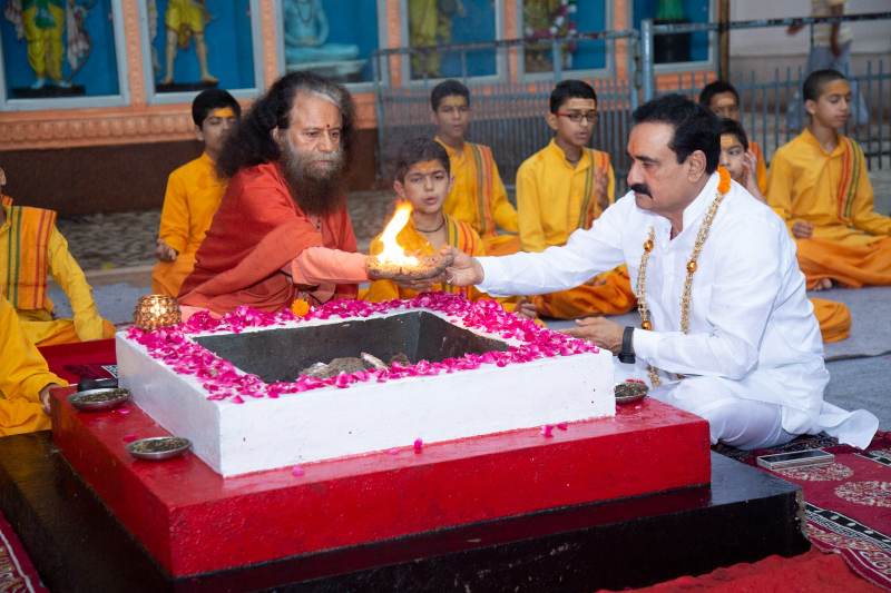 स्वामी चिदानन्द सरस्वती जी के पावन सान्निध्य में विश्व शान्ति यज्ञ में अर्पित की आहुति