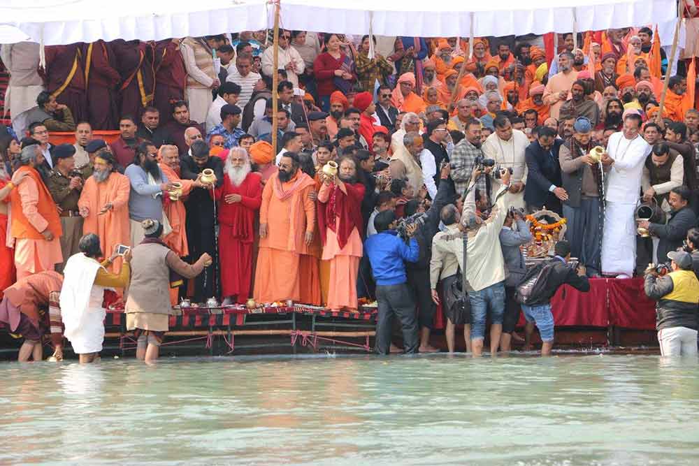 A beautiful Ardha Kumbha Mela inaugural ceremony brought together revered saints, eminent Mahants, Mahamandaleshwars and the heads of nearly every major traditional ashram and lineage in Rishikesh and Haridwar at