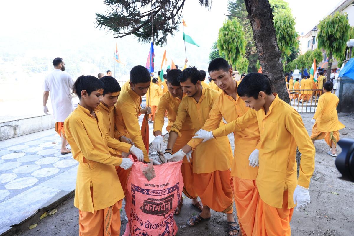 Today, the Rishikumars, Acharyas, and devotees at Parmarth Niketan joined hands in Shramdaan, sharing the powerful message: Cleanliness is Service, Shramdaan is Mahadaan.