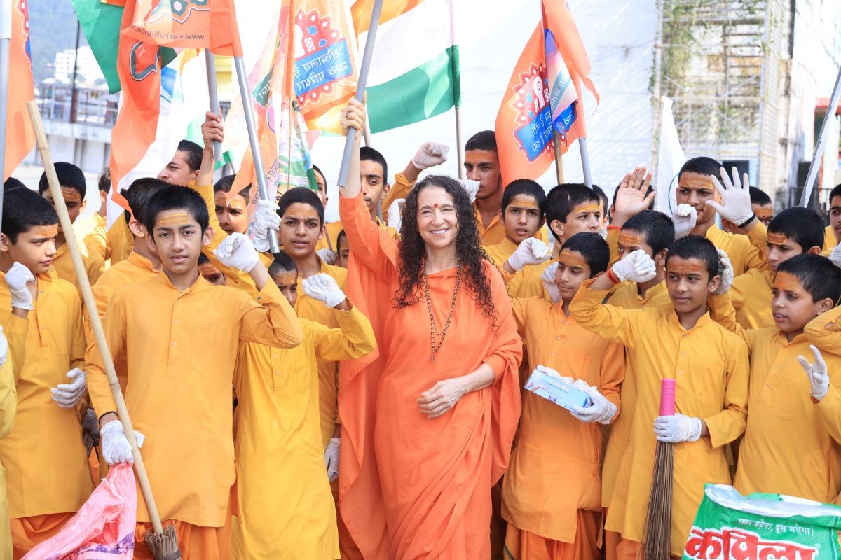 In the spirit of Mahatma Gandhi Ji’s vision of a Clean India and in response to the call of Hon’ble Prime Minister Shri Narendra Modi, a grand “Shramdaan Mahadaan – Cleanliness is Service” was organized at Parmarth Niketan with the blessings of HH Pujya Swami Chidanand Saraswatiji and the guidance of Pujya Sadhvi Bhagawati Saraswati Ji.