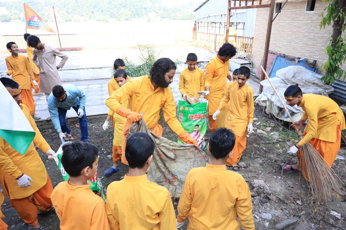 Today, the Rishikumars, Acharyas, and devotees at Parmarth Niketan joined hands in Shramdaan, sharing the powerful message: Cleanliness is Service, Shramdaan is Mahadaan.