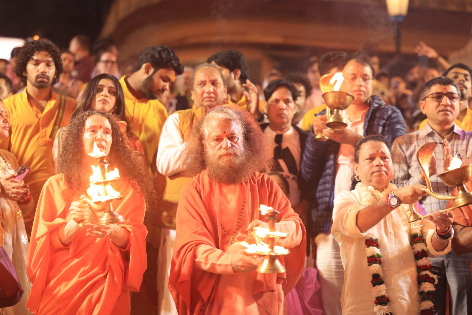 Special prayers were offered for world peace, national prosperity, and collective well-being. The beautifully lit Parmarth campus radiated an atmosphere of devotion, spirituality, and cultural celebration.