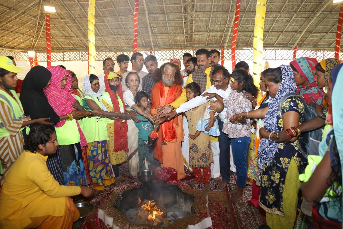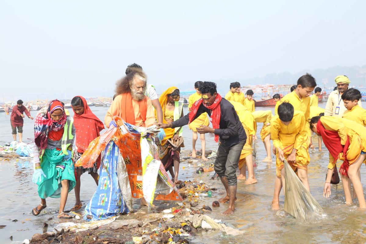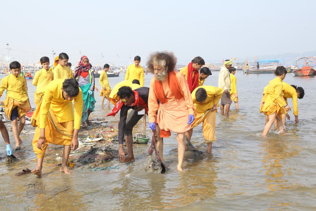 During the cleanliness campaign, hundreds of cleanliness ambassadors distributed Dettol soap, caps, t-shirts, and umbrellas. Pujya Swami Chidanand Saraswati Ji thanked everyone for raising awareness about cleanliness as he bid farewell to the Kumbh and he honored the police and sanitation workers for their service.