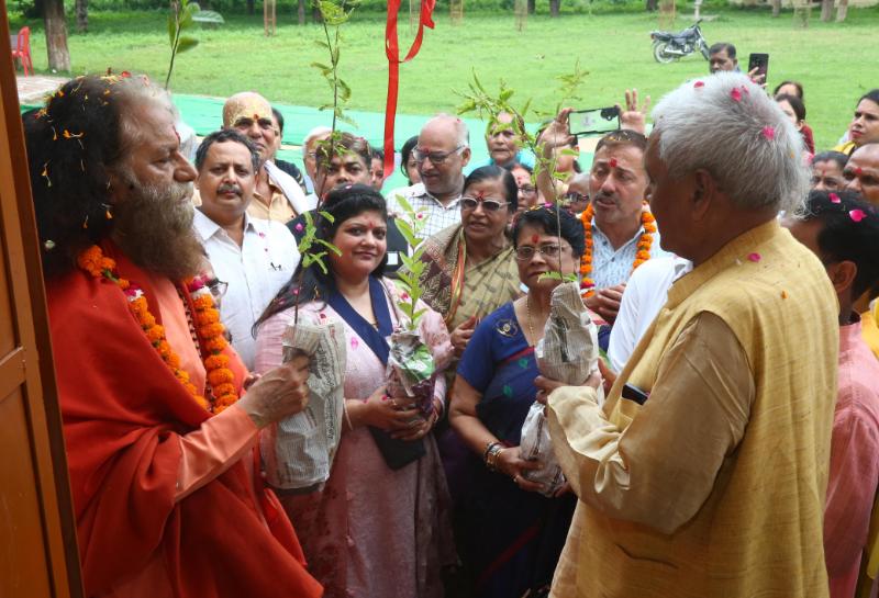 Swami Chidananda Saraswati Ji planted Rudraksh saplings in the holy presence of Acharyas, students and special guests of Shri Muktik Gurukul Mahavidyalaya, Ayodhya Dham and inspired people to plant as many saplings as possible this monsoon. On this occasion, famous lawyer and industrialist Vipin Kumar Singh, Innerwheel Club President Mrs. Ranjana Sharma, Prakash Kumar Gupta, Yogacharya Vimal Badhawan, Acharya Deepak Sharma, Mohan Singh, Suraj Sharma and many other eminent citizens, teachers, acharyas, students participated.