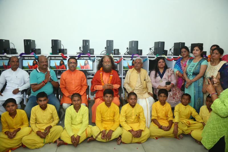 With the divine grace and blessings of HH Param Pujya Swami Chidanand Saraswatiji, President of Parmarth Niketan, ten computer sets were provided free of cost to Ayodhya’s ‘Shri Muktik Gurukul Mahavidyalaya’ setting the stage for the inauguration of the Shatabdi Computer Lab in the presence of Acharyas, students and revered saints, including Shri Nritya Gopal Das Ji, Head of Mani Ram Das Camp, Ayodhya and President, Shri Ram janmabhoomi nyas.