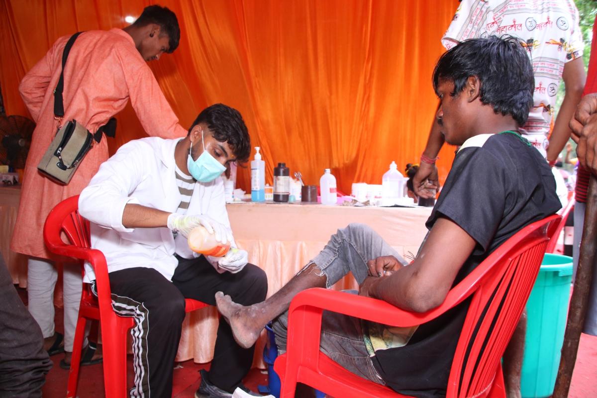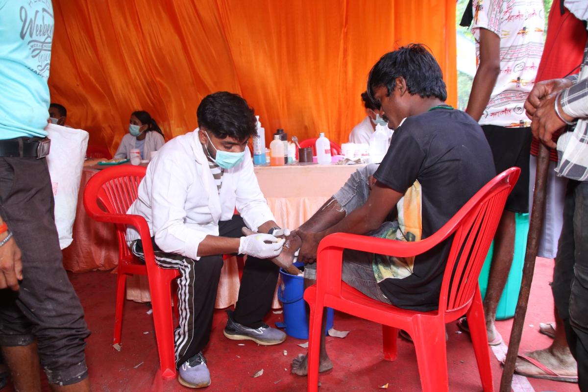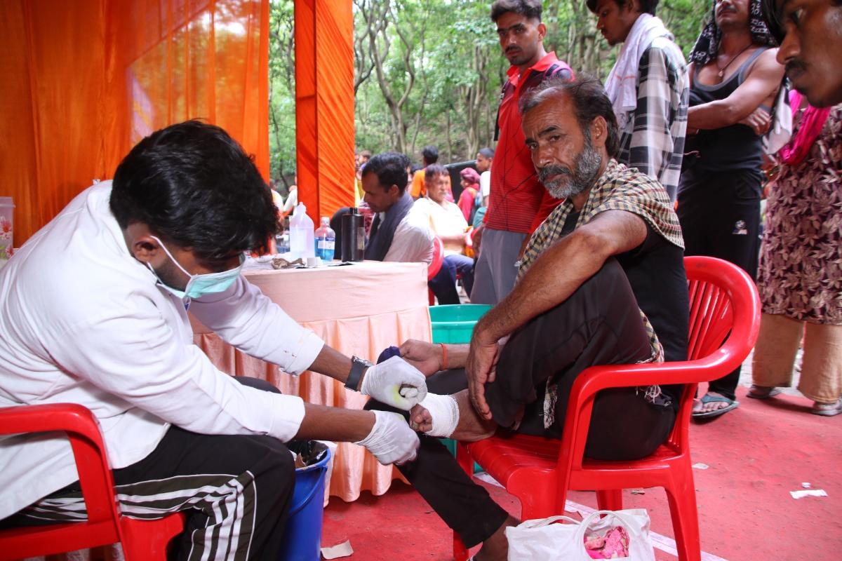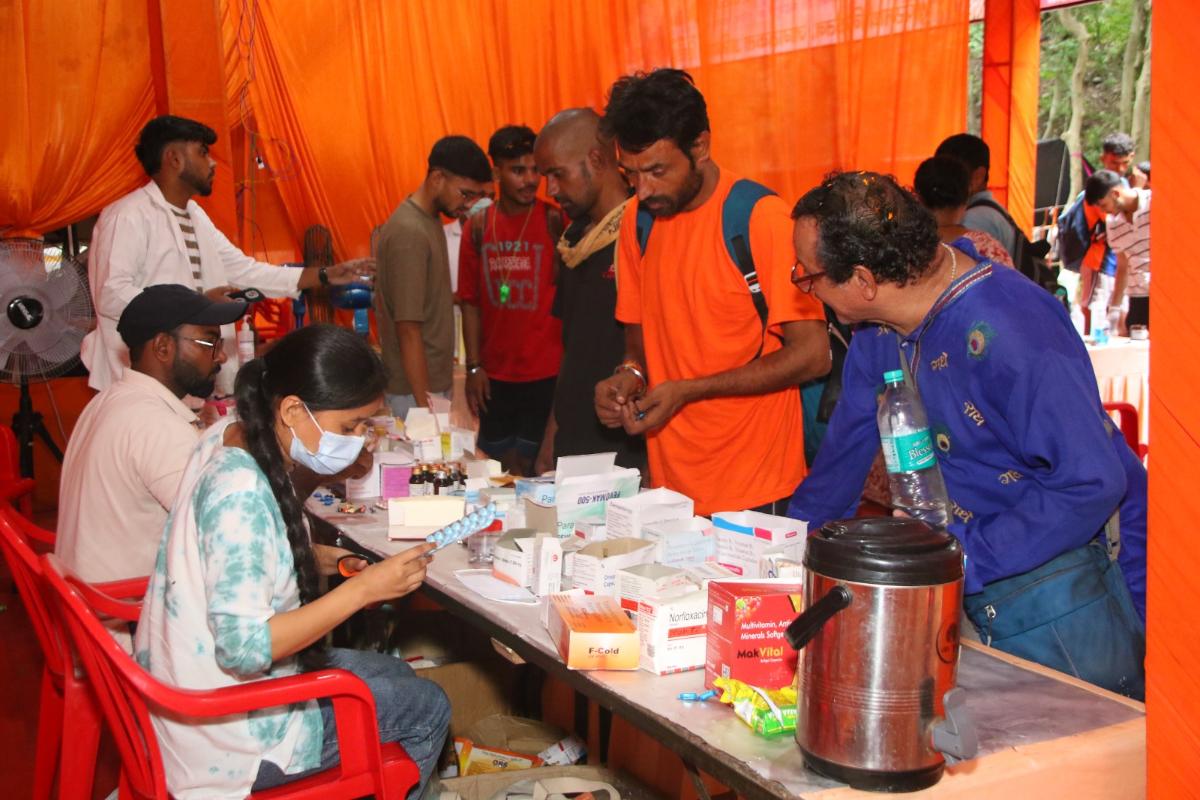 Under the divine guidance and blessings of HH Pujya Swami Chidanand Saraswatiji, Parmarth Niketan is offering free medical services to Kawad Yatris in the Rajaji National Park region, benefitting thousands of devotees every day.