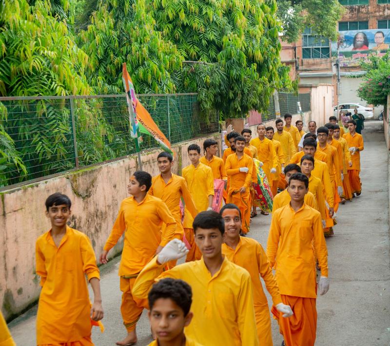 As the 2024 Kanwad Mela draws to a beautiful and successful conclusion, the Rishikumars, Acharyas and sevaks of Parmarth Niketan today launched a cleanliness drive to collect the waste products left behind in Neelkanth Marg, and held a rally to create awareness about environmental protection. During this, plastic bottles, single-use plastic bags and other materials were collected and disposed of.