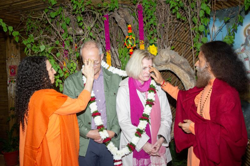 Pujya Swami Chidanand Saraswatiji and Pujya Sadhvi Bhagawati Saraswati Ji engaged in meaningful discussions with Ms. Stener on crucial global topics, including environmental conservation, water resource management, and global peace and harmony.
