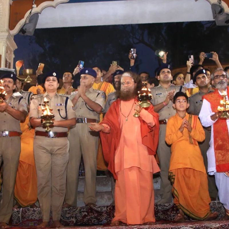 Pujya Swamiji appreciated all the police officers who served for the Kanwad Yatra pilgrims during Parmarth Niketan ‘s world famous Ganga Aarti. Pujya Swamiji praised their hardwork and support which they provided for our medical camp, saying how their efforts made this Kanwad Yatra safe and easy for all the pilgrims who arrived from various parts of India.