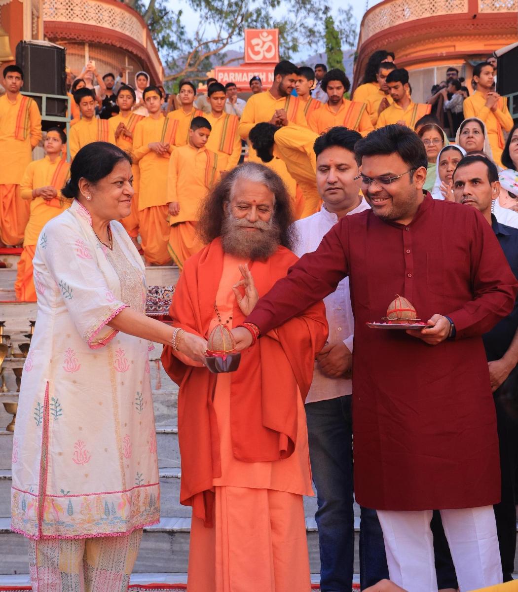 Shri Jay Shah, along with his mother Mrs. Sonal Shah, Jay Shah participated in the divine Ganga Aarti at Parmarth Niketan, Rishikesh, in the holy presence of Pujya Swami Chidanand Saraswati Ji.