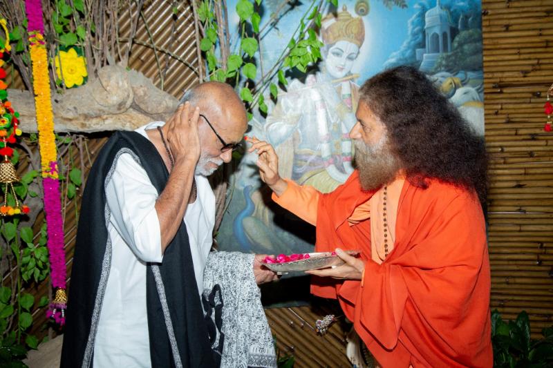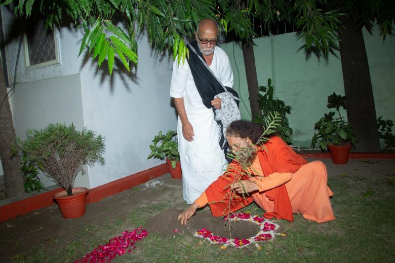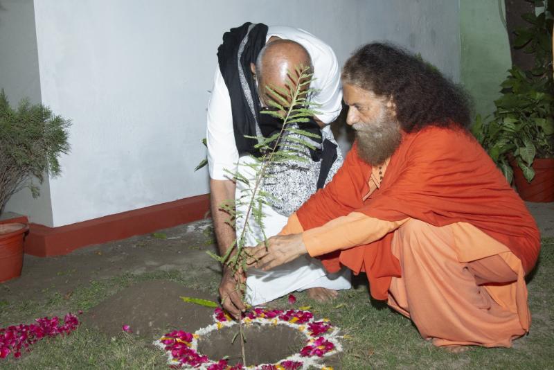 President of Parmarth Niketan, Pujya Swamiji, celebrated Bapu’s life and dedication as a true servant of culture, tradition, and simplicity. Together, they planted an Amla sapling on the ashram grounds, symbolizing their commitment to environmental stewardship and spiritual growth.